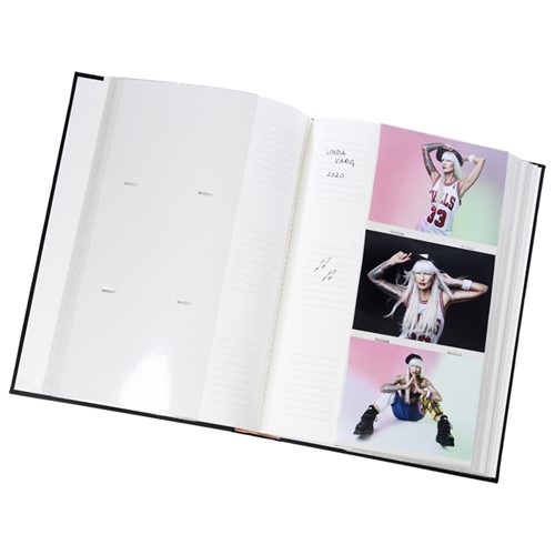 Albumet har textilklädda svarta pärmar som ger en stilren och modern känsla. Det gör sig lika fint stående i bokhyllan som liggande framme på soffbordet. Ett perfekt val för dig som vill bevara dina foton med både stil och kvalitet.