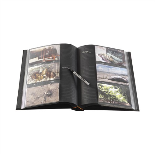 De svarta, syrafria albumbladen skyddar dina bilder och skapar en elegant bakgrund som verkligen får fotona att stå ut. Varje bildplats har dessutom ett praktiskt skrivfält - perfekt för datum, plats eller en kort notering.