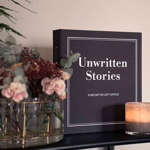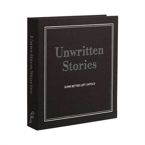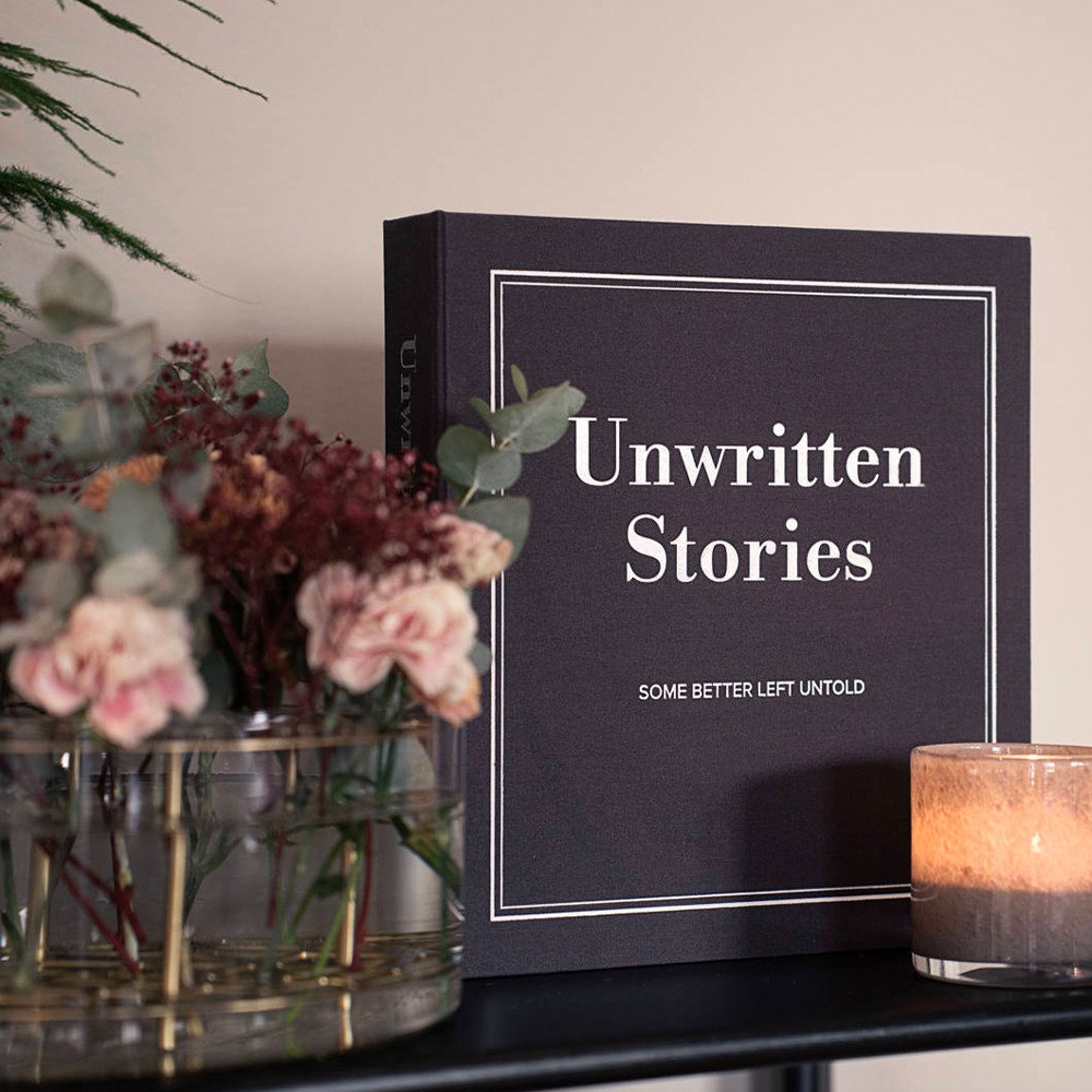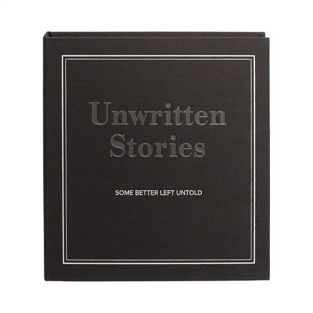 Albumet har ett stilrent textilomslag och den fyndiga inskriptionen “Unwritten Stories (some better left untold)” på framsidan. En perfekt balans mellan sofistikerad design och subtil humor, med ett stänk av mystik som gör det extra spännande att öppna.