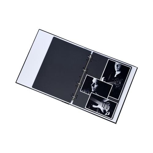 Förvara dina bilder med stil i denna lyxiga ringpärm tillverkad i svart läderimitation. Perfekt för dig som vill ha en flexibel och elegant lösning för att organisera dina foton. Pärmen rymmer upp till 60 albumblad eller fotofickor (säljs separat), så att du kan anpassa innehållet helt efter dina behov.