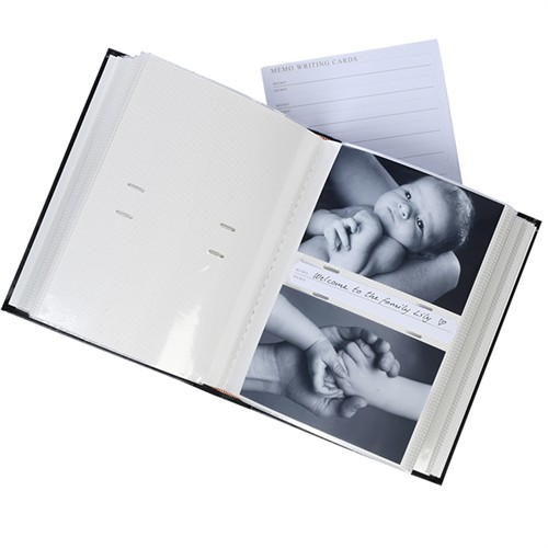 De vita, syrafria albumbladen skyddar dina foton och har skrivfält vid varje bild, så att du enkelt kan lägga till minnesvärda anteckningar eller datum. Ett perfekt val för dig som värdesätter både stil och funktion!
