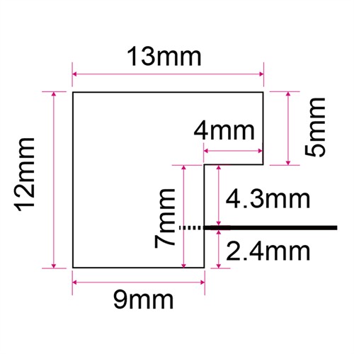 - Profilmått: 13 mm bred | 12 mm djup