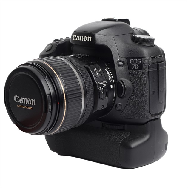 Begagnad Canon EOS 7D i kit med en EF-S 17-85 IS samt batterigrepp.