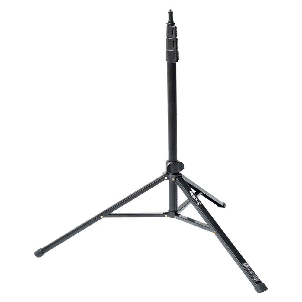 Lätt, bärbart och slitstarkt, med 1/4" gängad adapter i korrosionsskyddad metall och kompatibel med olika COB-lampor, panellampor, ringljus, reflektorer, softboxar, bakgrundsplattor mm. Justerbar höjd på 56-200 cm och med halkfria och slitstarka silikonfötter.
