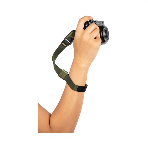 Handledsöglan kan låsa sig i öppet läge när du fotograferar, eller dras åt för extra säkerhet när du rör dig. När du inte använder den? Rulla ihop den runt handleden eller stoppa den i fickan – en smart magnet håller remmen på plats tills nästa fototillfälle.