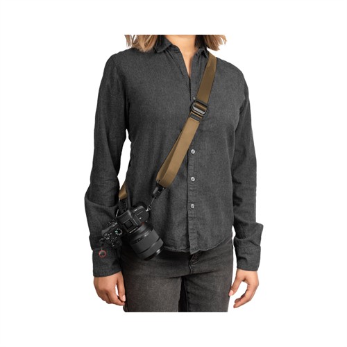 Slide Lite kan användas som axelrem, nackrem eller sele. Ena sidan är slät och glider lätt över kläder, medan den andra har silikon som håller remmen på plats. Dubbla snabbjusteringar gör det enkelt att anpassa remmen för alla aktiviteter. När du inte fotograferar kan kameran fästas tätt mot kroppen för säker transport.