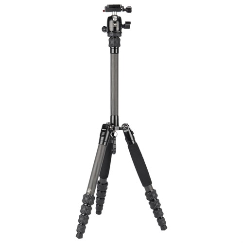 Lätt och starkt kolfiberstativ med fem bensektioner och medföljande kulled. Mycket användbart för resor.