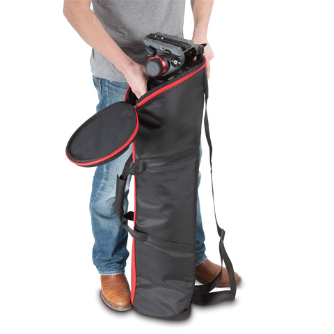 Stativbenen passar bekvämt i den smalare änden. Dragkedjan sträcker sig ner hela längden av väskan och går runt den övre området för att kunna öppna enkelt och ta upp ditt stativ.Thermostoppning för huvudet skyddar stativhuvudet under transporten.