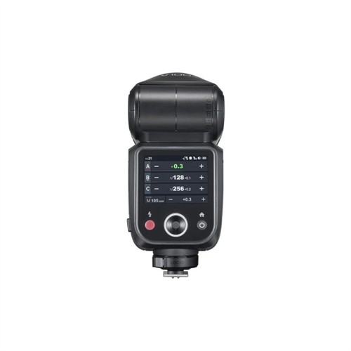 Med ett kraftfullt litiumjonbatteri (VB30) får du snabba uppladdningstider och lång användningstid – utan att behöva byta AA-batterier. V100 är dessutom utrustad med funktioner som stöd för TTL, vilket gör den enkel att använda i snabba situationer utan att tumma på ljussättningen.