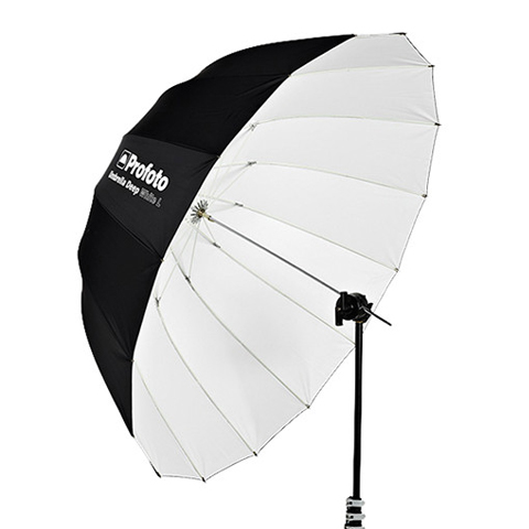 Profoto Umbrella Deep S finns i tre varianter: silver, vit och transparent. Den vita varianten skapar ett mjukt men fortfarande direkt ljus, perfekt för porträtt och skönhetsfotografering. Fäst en diffuser som finns som tillval för ett mjukare ljus med ännu jämnare spridning.