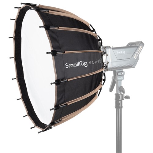 RA-D55 är en parabolisk softbox, med en diameter på 55 cm, ett djup på 37 cm ger det en liten, mångsidig, lätt, och bärbar softbox som är smidig att använda och kan skapa en 3D-ljuseffekt.