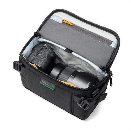 ProTactic Lite SLX 110 AW III är den idealiska väskan för dig som vill resa lätt men ändå skydda din värdefulla utrustning. Den rymmer en spegellös fullformatskamera med ett monterat 24–70mm f/2.8-objektiv och har MaxFit™-avdelare som ger perfekt passform för mindre objektiv och tillbehör – utan att slösa utrymme.