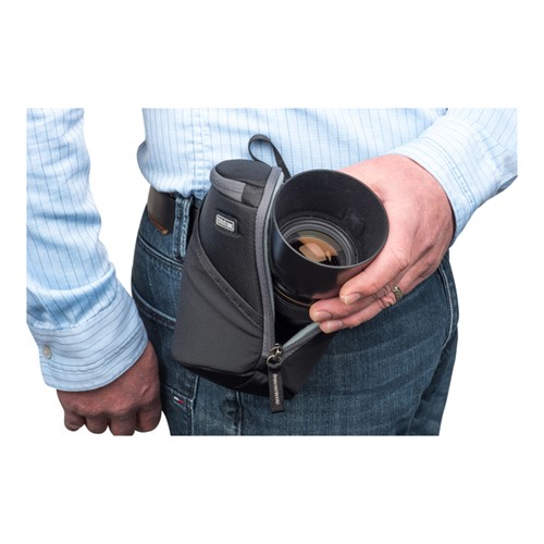 Skyddande objektivväska tillgänglig i flera olika storlekar. Väskan kan öppnas på två sätt.