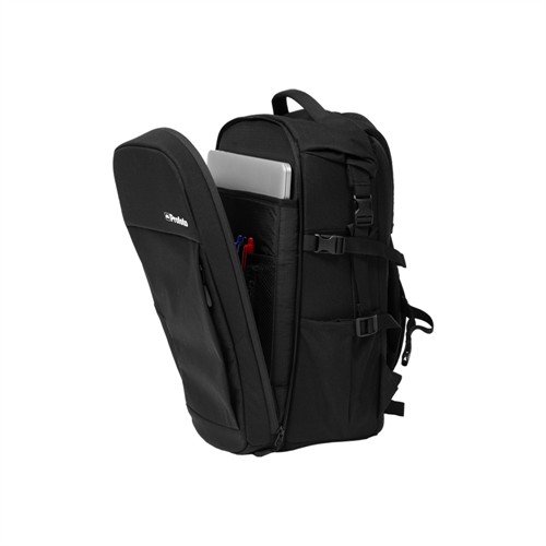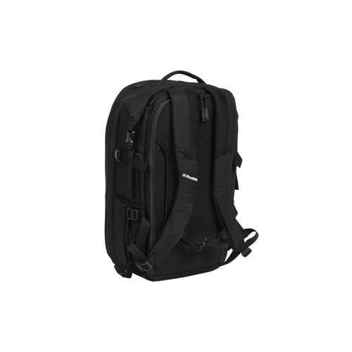 Sidorna har fickor och remmar för att fästa stativ eller små belysningsstativ. Ryggpanelen har dessutom en genomgående ärm för trolleyhandtag, vilket gör det enkelt att kombinera med resväska. De vadderade axelremmarna, bröstremmen och topp-sidhandtagen ger maximal komfort och flexibilitet.