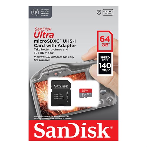 SanDisk Ultra® microSDX™ UHS-I-kortet är perfekt för inspelning och visning av Full HD-video, med plats för ännu fler timmar av video. Överföringshastigheter på upp till 140 MB/s, säkerställer att du kan flytta hela ditt innehåll mycket snabbt. A1-ratingen för dessa kort betyder att du också kan ladda appar snabbare.