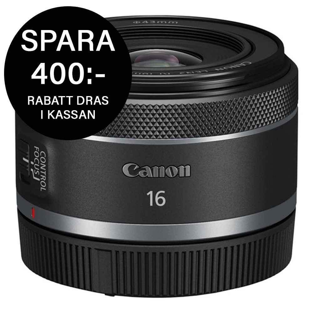 Upptäck det snabba och prisvärda Canon RF 16mm f2,8 STM, ett kompakt och lätt vidvinkelobjektiv perfekt för vloggning, landskapsfotografering, arkitektur och astrofotografering. Med sin fasta brännvidd på 16mm och ljusstarka f/2,8-bländare erbjuder det här fullformatsobjektivet kreativa möjligheter för både stillbilder och film.