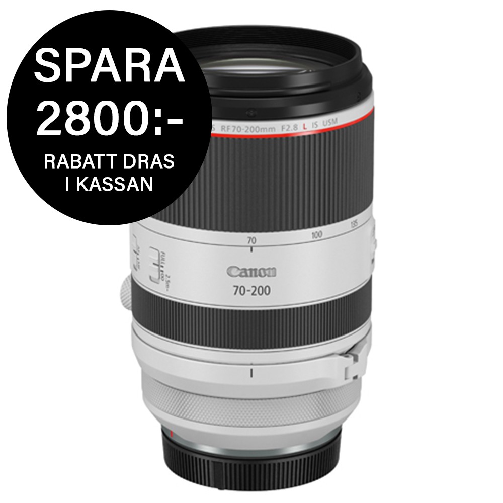 Canon RF 70-200mm f2,8 L IS USM är ett objektiv som kombinerar kraftfull zoom med exceptionell bildkvalitet. Med en konstant ljusstark f2,8-bländare genom hela brännvidden får du utmärkt kontroll över ljuset, vilket ger skarpa och detaljerade resultat även i svag belysning. Den kompakta desginen gör objektivet lätt att ta med överallt, och med en närgräns på bara 0,7 meter är det perfekt för att fånga både nära och avlägsna detaljer med precision.