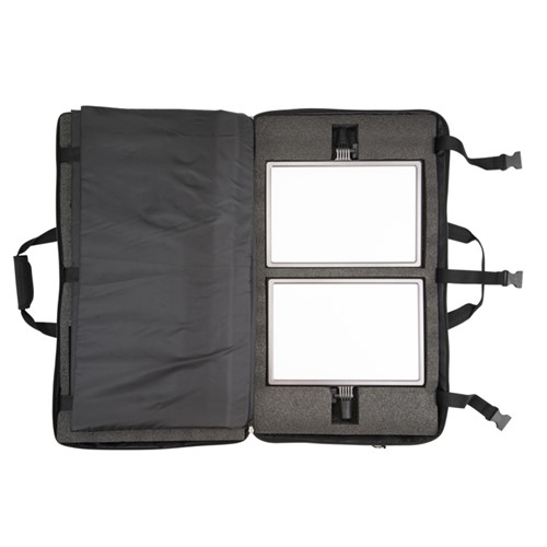 LumiPad 25 är bara 3,05 cm tjock och väger endast 1 kg. LumiPad 25 kan drivas med antingen en nätadapter (ingår) eller två kompatibla Sony NP-F-batterier som NP-F550/F750/F960 (köps separat), så att du kan arbeta var som helst oavsett tillgång till ström.