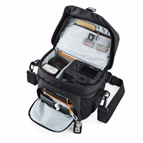 Med justerbara avdelare inuti kan du enkelt anpassa väskan efter din utrustning. Dessutom finns flera extra fack och fickor för tillbehör som minneskort, batterier, filter eller personliga prylar.