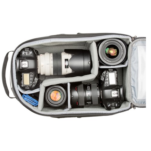 2 DSLR med grepp, 4–6 standardzoomobjektiv och en 10-tums surfplatta. Eller 1 DSLR med grepp, 5–7 standardzoomobjektiv och en 10-tums surfplatta. Eller 2 stora spegellösa kameror, 4–6 objektiv, en blixt och en 10-tums surfplatta.