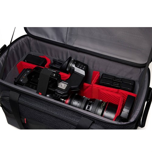 Tack vare sin rektangulära form och dimensionerna erbjuder väskan oändliga variationer och den är dessutom utrustad med fyra ytterfickor. Organiseringsmöjligheterna på framsidan ger plats för att förvara olika tillbehör som kablar och anteckningsblock. Den bakre fickan är avsedd för dokument medan de två expanderbara sidofickorna skapar extra utrymme för mer utrustning. Både fram- och bakfickorna har flera öglor för att fästa och hänga prylar som kan behövas. Huvudfacket för är utrustat med fyra M-Guard dividers, varav den ena kan delas på mitten för ännu större flexibilitet när du ska anpassa väskans interiör till din utrustning. Det finns också en inbyggd elastisk rem för att hålla kameran stadig när du är på språng.