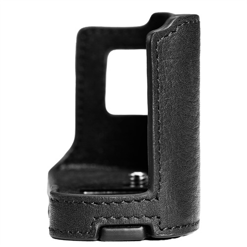Halvfodralets slitstarka och ventilerande läder berikar kamerans retrolook och känsla, medan mockafodret ger skydd mot repor. Med en inbyggd 1/4"-20 tumskruv i botten kan fodralet fästas direkt på kameran utan extra verktyg.